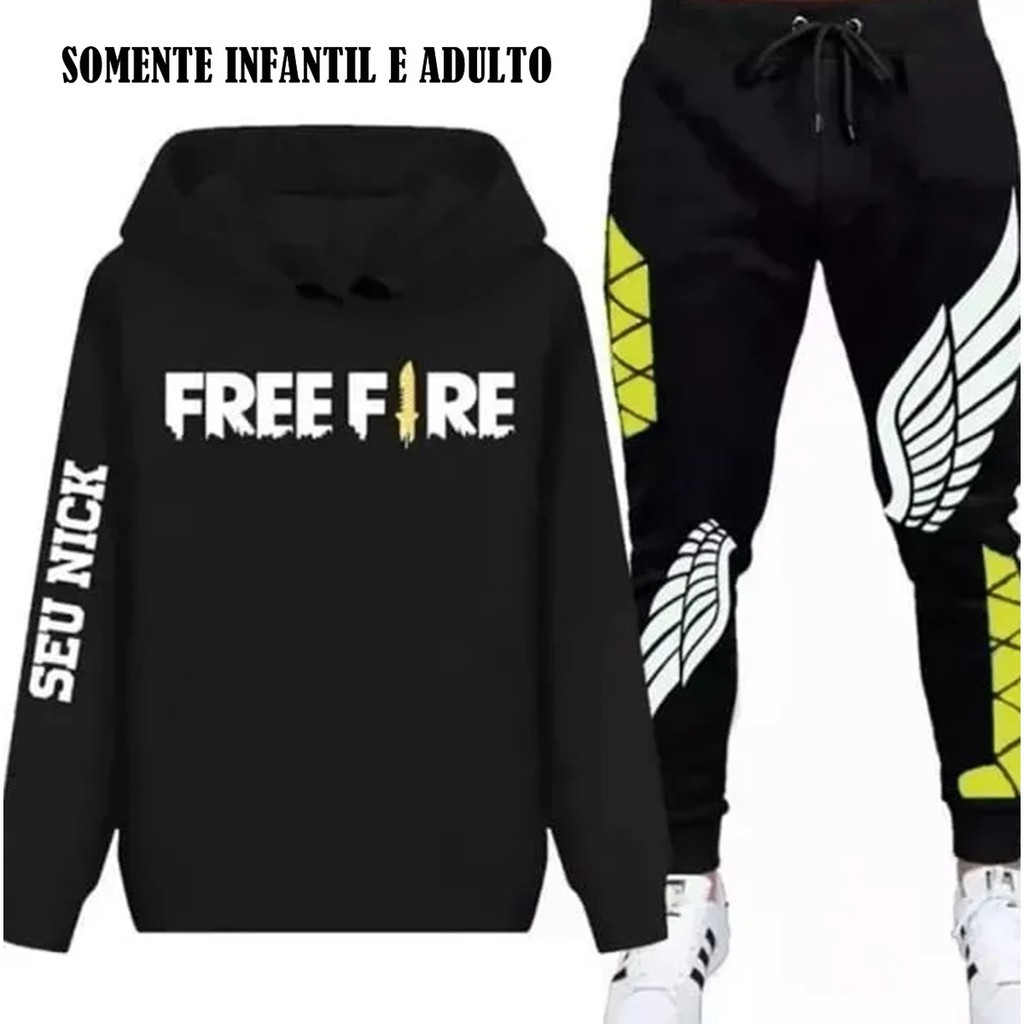 Conjunto Infantil Moletom Calca Angelical Free Fire Game Mobile Estilo Battle Royale Gamer Geek Preto No Shoptime Players freely choose their starting point with their parachute and aim to stay in the safe zone for as long as possible.
